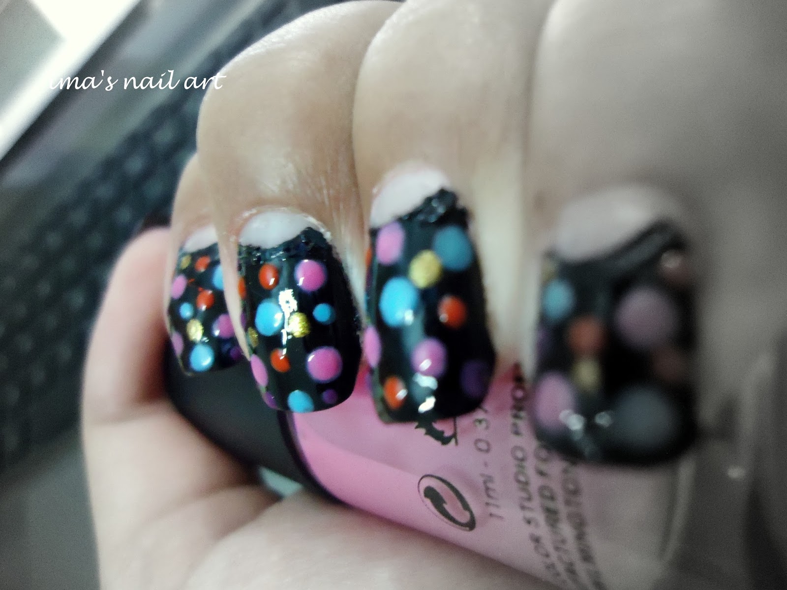 So with all the raining and the dotting tool, this design popped into my mind. Its very simple, looks amazing and plus it's the half moon manicure. :D